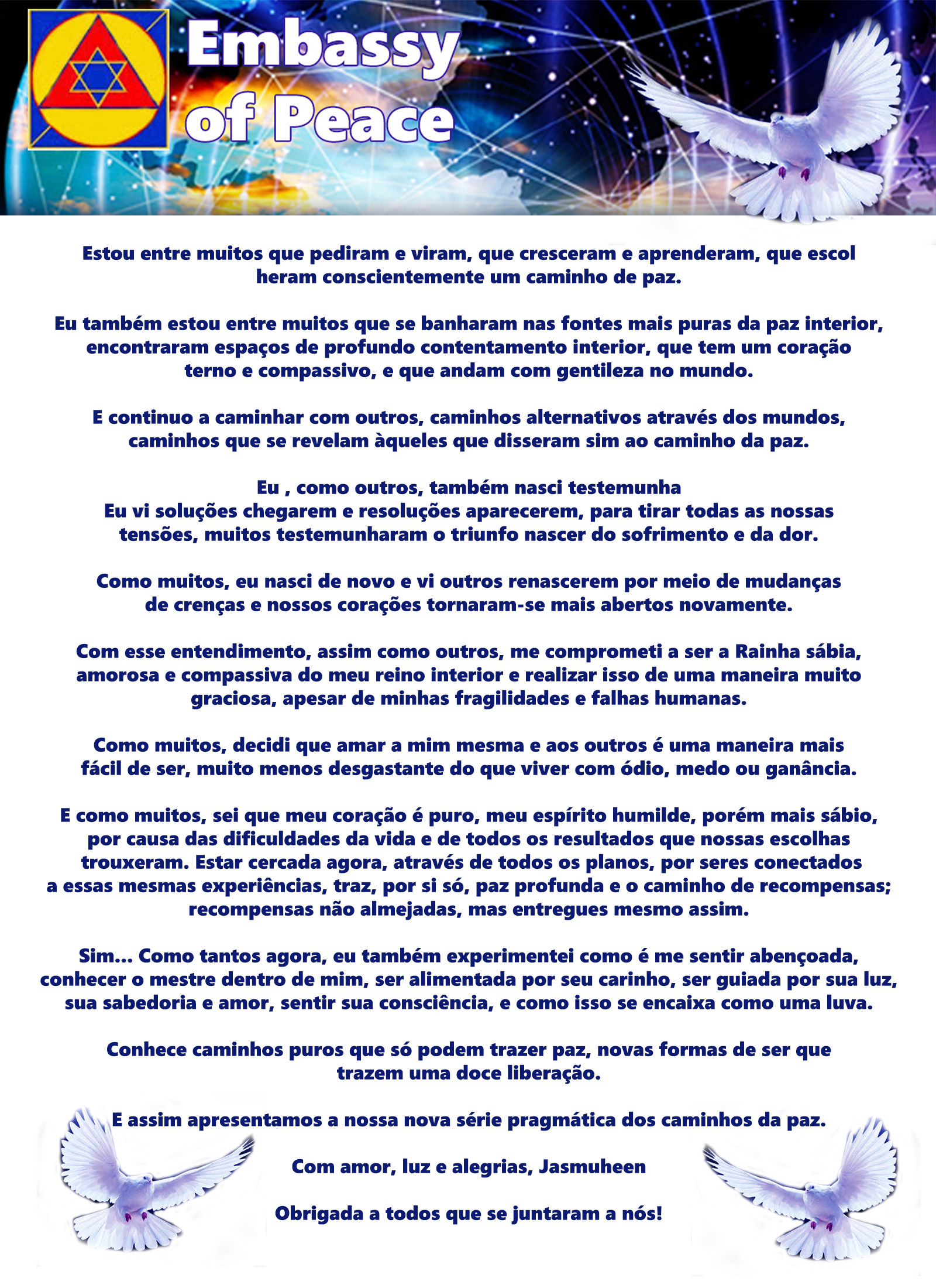- Re-acessando, fortalecendo e re-experienciando nossos eus intergalácticos e nossas vidas em outros sistemas estelares mais equilibrados.